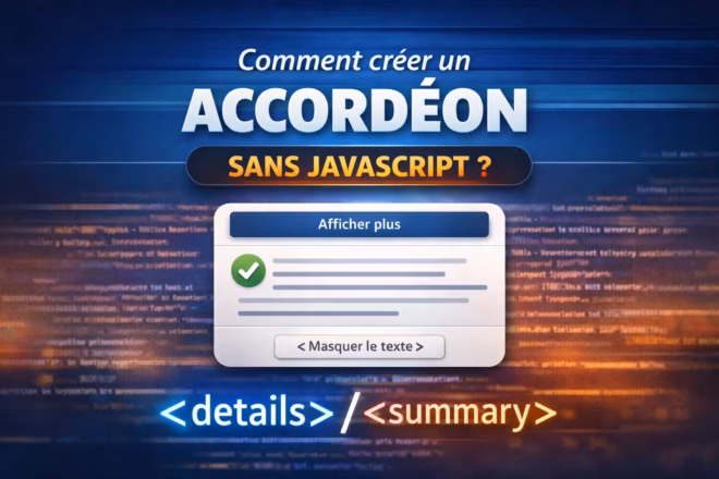 On cherche souvent la même chose : réduire le bruit visuel, garder la page lisible et laisser le lecteur déplier ce qui l’intéresse. En 2026, on obtient ce résultat proprement avec <details> et <summary>. Le navigateur fournit un widget natif. Ainsi, on évite les dépendances JavaScript, on simplifie le DOM et on améliore la robustesse.